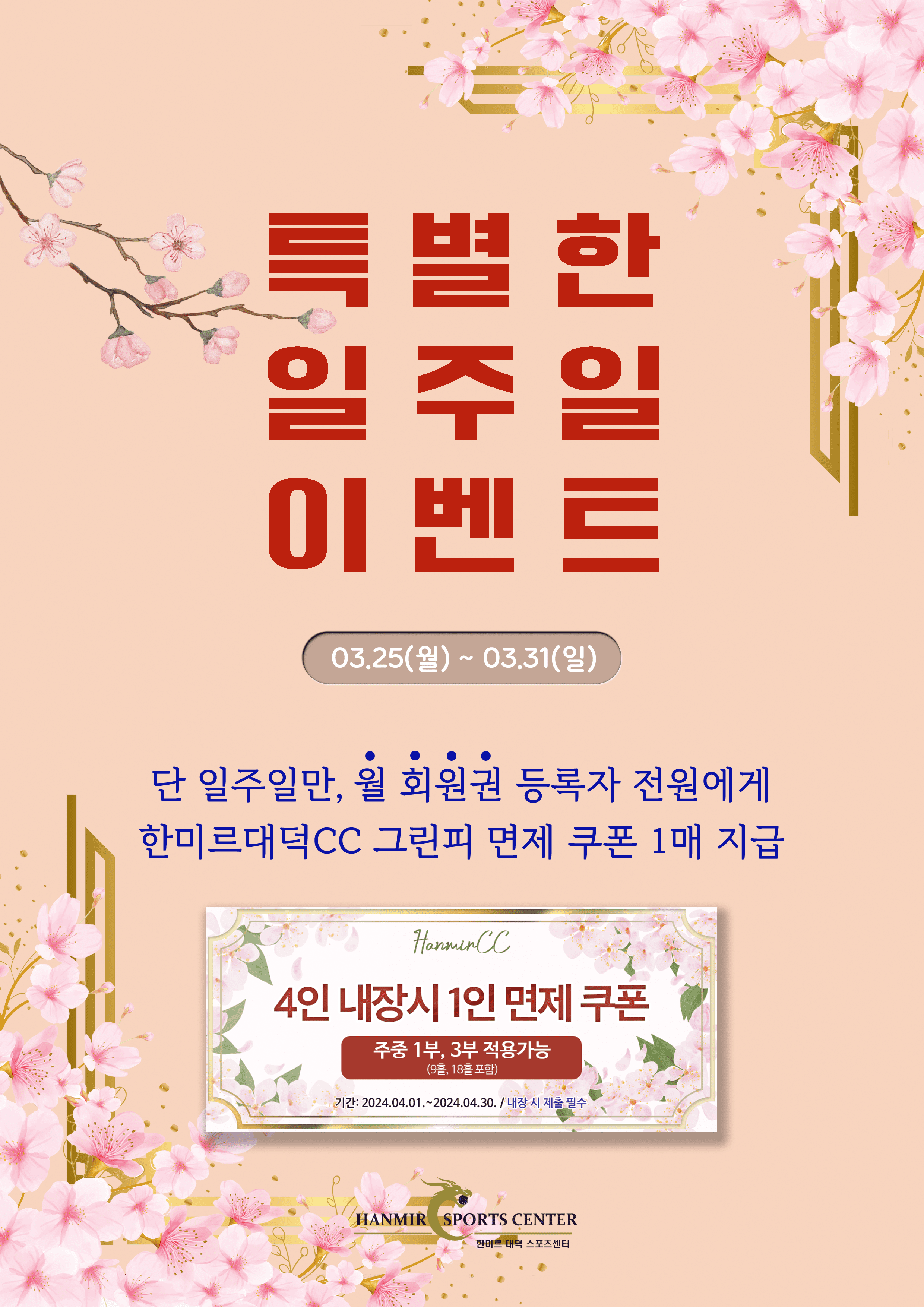 스포츠센터 월회원 등록 이벤트(3/25~3/31)