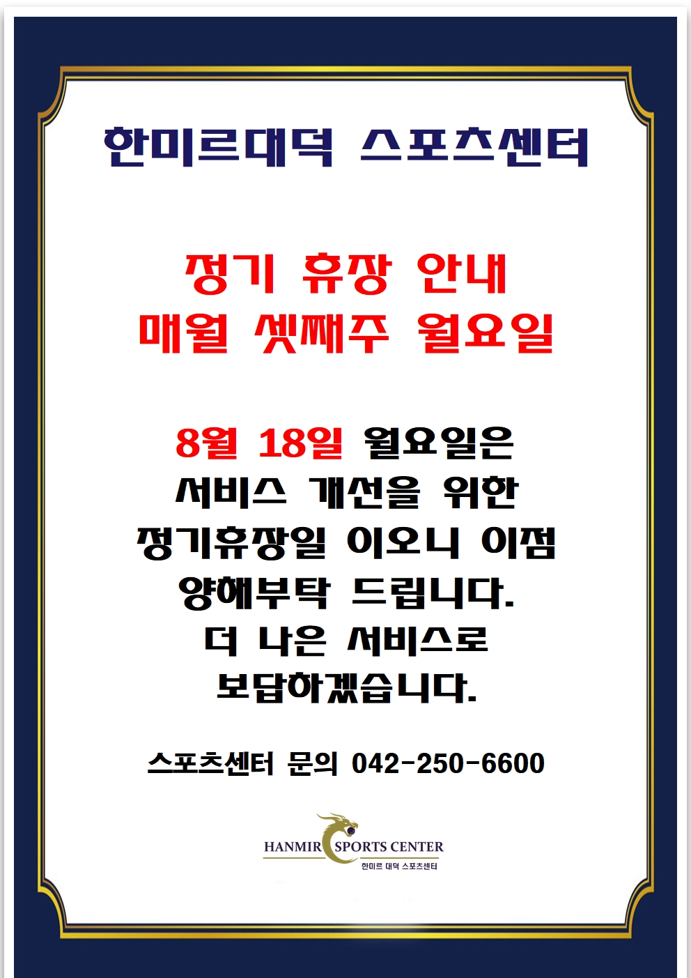 8월 휴장 안내